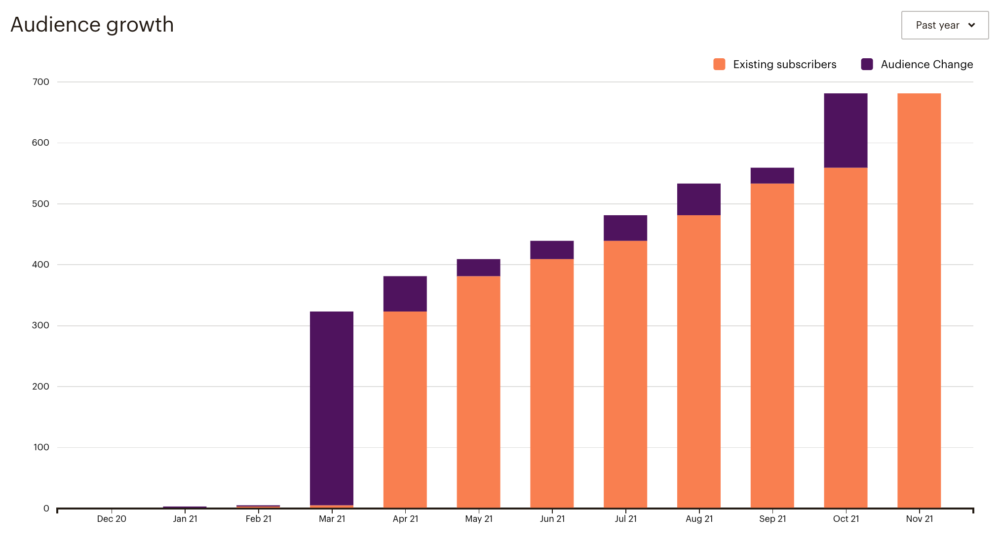 Iar mai jos sunteți voi, cititorii acestui newsletter, de-a lungul anului care se încheie (nu avem acolo și luna decembrie încă, așa mișcă Mailchimp statisticile, mai pe ardelenește).