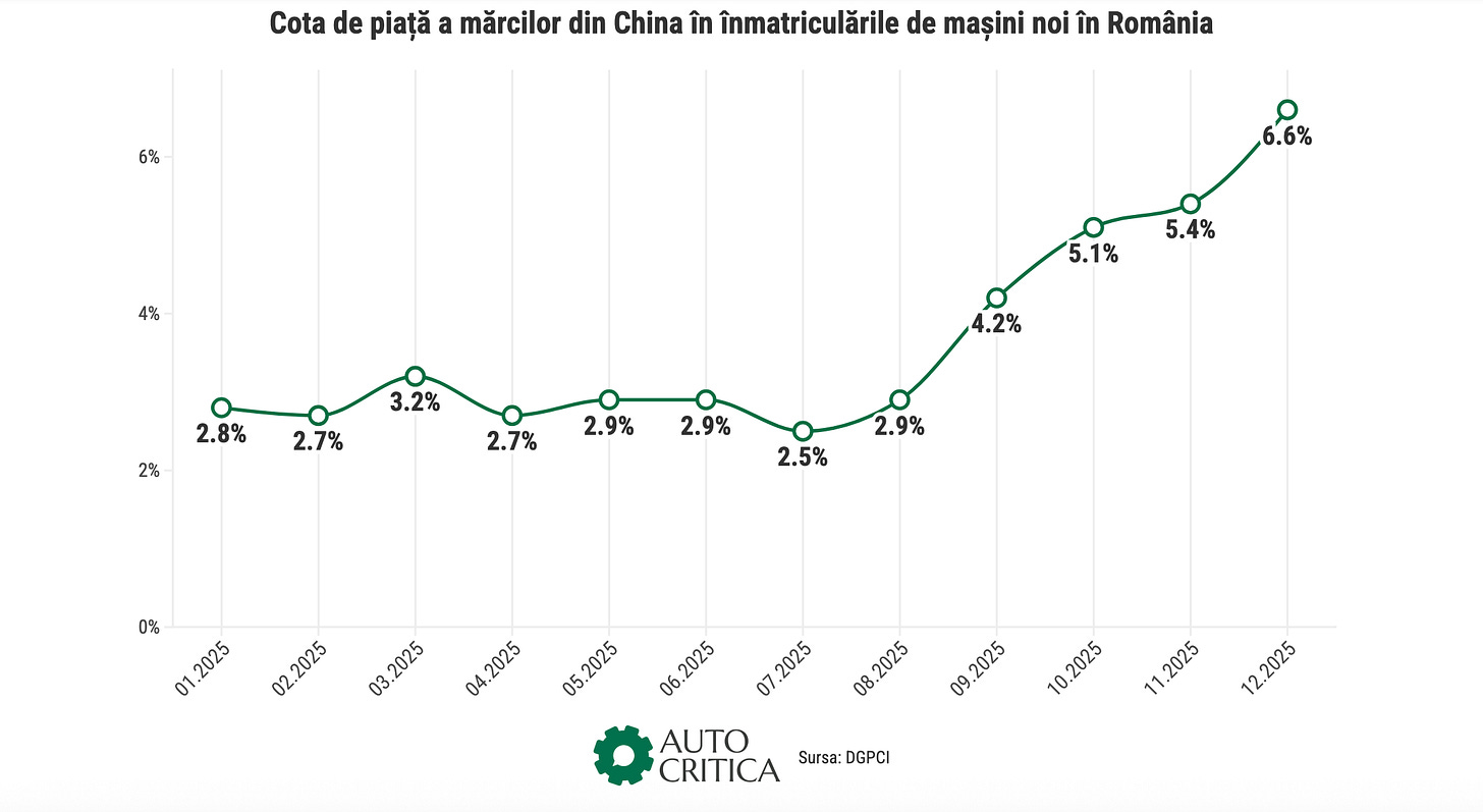 De altfel, decembrie 2025 a devenit cea mai bună lună pentru piața auto din România de după iunie 2024, când s-au înmatriculat de asemenea 21.300 de unități.