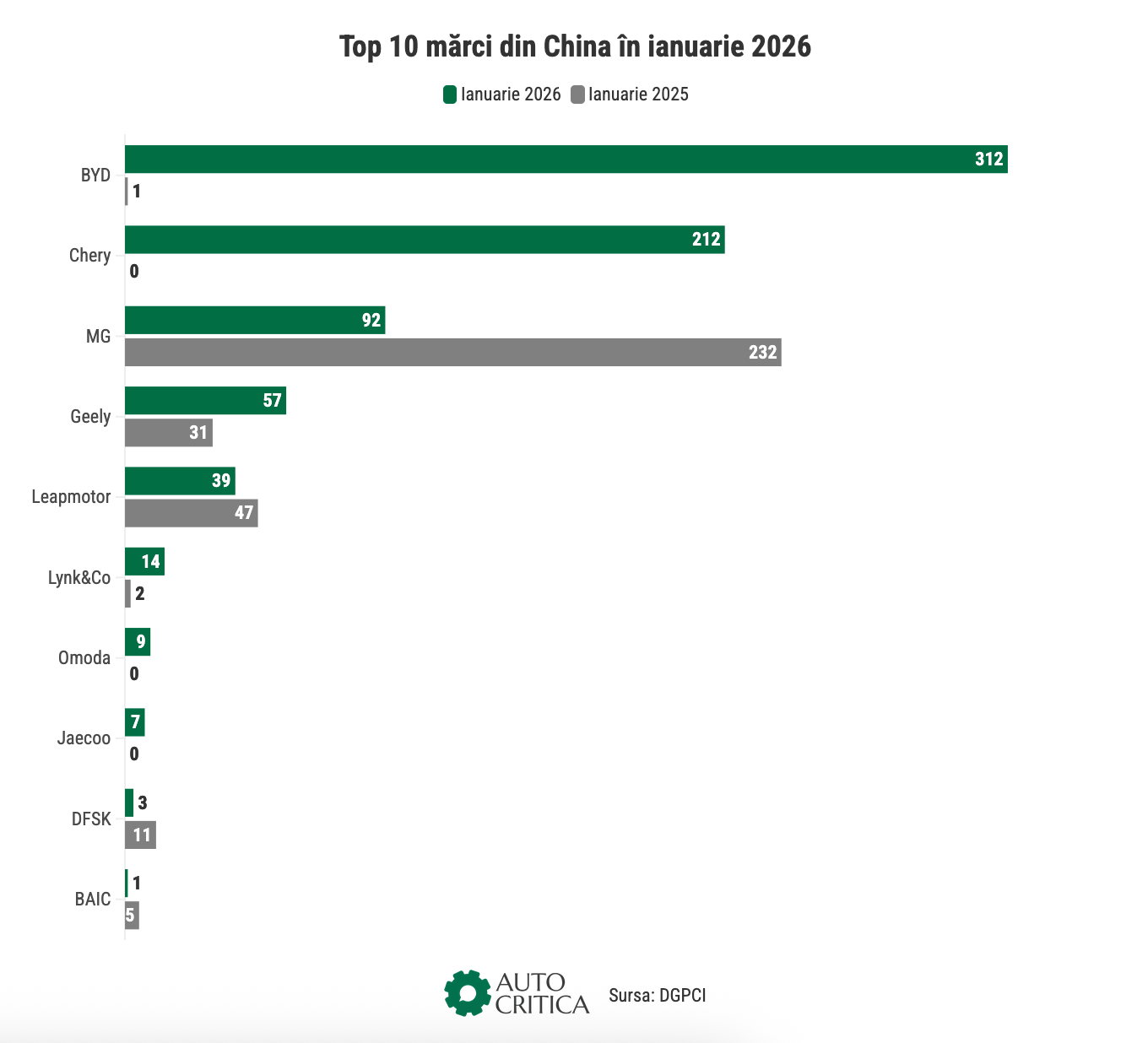 Ușor adiacent, starea pieței auto din România pe ianuarie 2026. Și mai important, cum se explică scăderea de -34% în rândul înmatriculărilor de mașini noi. Spoiler alert: cu argumente logice și date solide. Și o premieră: BYD a devansat MG și a devenit cel mai vândut producător chinez pe piața de la noi.