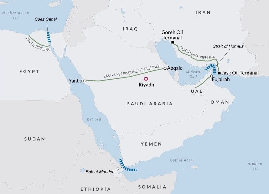 Alternative la Ormuz? Nu prea sunt, dar cel mai bine s-au organizat șeicii din Arabia Saudită: East-West este o conductă de petrol și gaze naturale cu o lungime de 1.200 de kilometri care traversează Arabia Saudită de la est (Al-Jubail) la vest (Yanbu) pentru a transporta petrolul la Marea Roșie și, de aici, prin Canalul Suez. Care, ce să vezi, nici el nu e scutit de probleme. Îți mai amintești de blocajul din Canalul Suez?