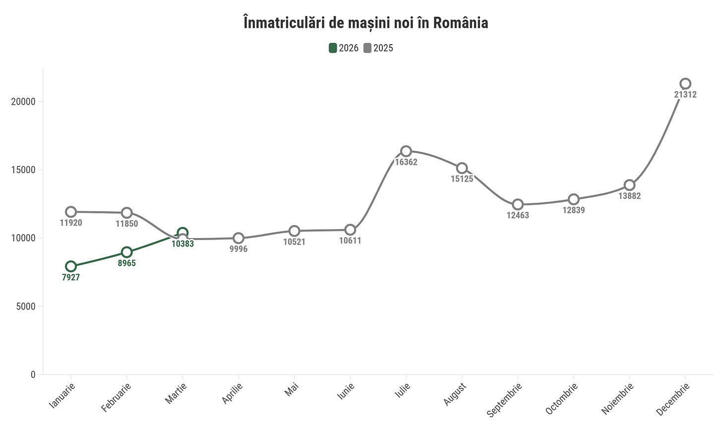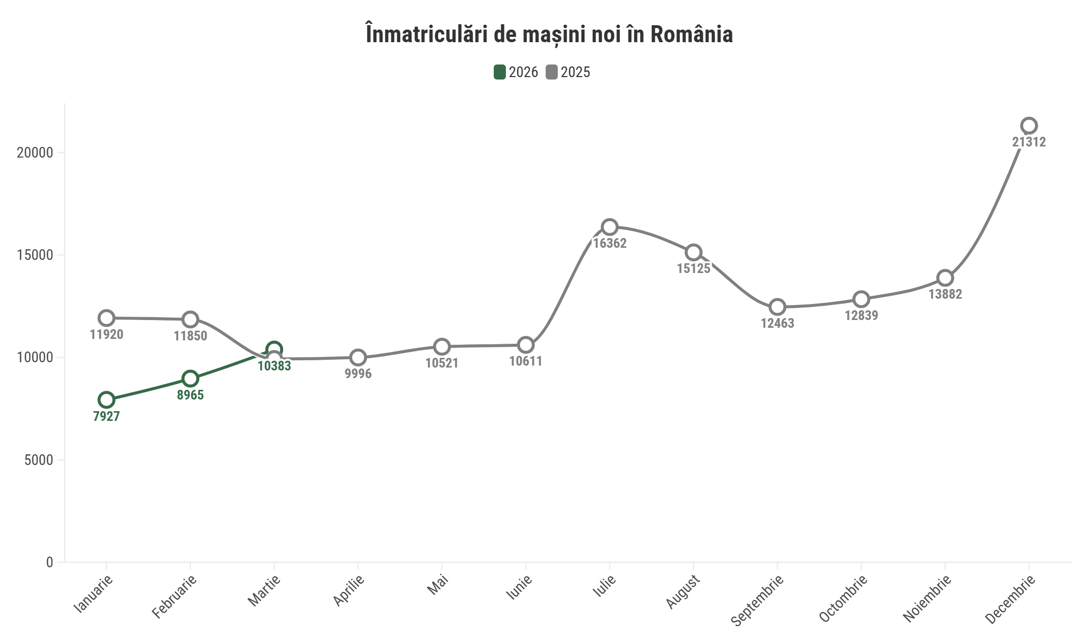 Citește analiza completă a pieței auto din România în luna martie, la pachet cu alte 20 de grafice interactive.