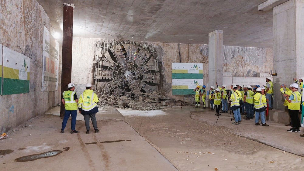 În imaginea de mai jos vezi modul în care prima „cârtiță” a străpuns în 18 august peretele viitoarei stații de metrou Aeroport Băneasa de pe viitoarea magistrală M6 1 Mai - Aeroport Otopeni. Cârtița (adică TMB-ul, în termeni oficiali) a forat circa 900 de metri între stația Tokyo (adică centrul comercial Băneasa Shopping City) și Aeroport Băneasa într-un interval de circa 4 luni, iar după o pauză de revizie își va continua drumul spre stația Gara Băneasa.